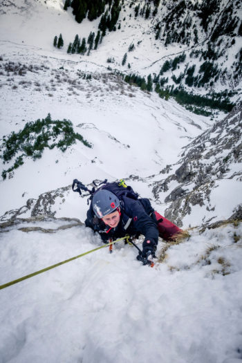 The Rubihorn in Allgäu is a real classic among those who like it cold, exposed, and sunless: At least its north face. Various climbs crisis cross the approximately 400-meter-high wall, which towers over Oberstdorf. Many locals just want to do it once – just so see what it is all about. And they often need to wait for years, because on the one hand the conditions have to be just right and on the other hand you need the right gear and partners. Numerous mountain rescue operations really do highlight, that the Rubihorn north face is no joke.